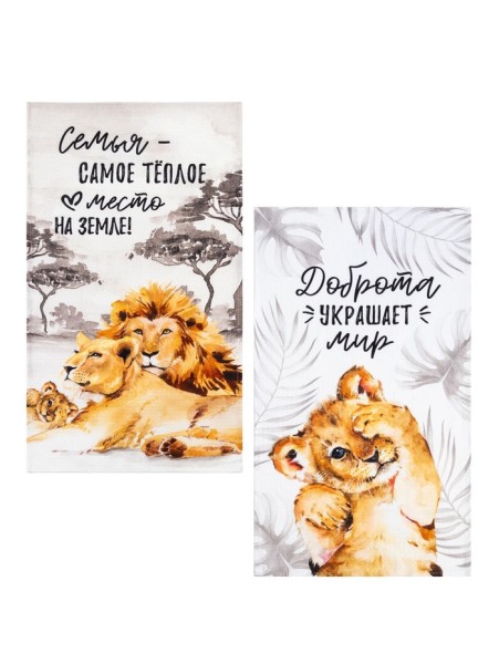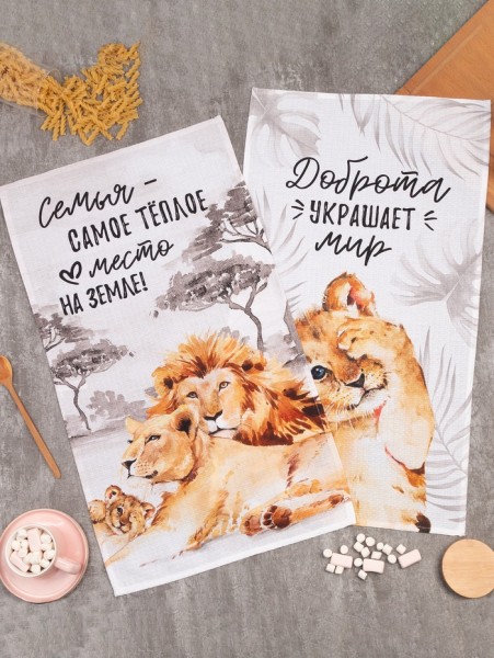 Набор кухонных полотенец Этель «Семья» 40х73см -2 шт, 100% хлопок, вафля 160 г/м2