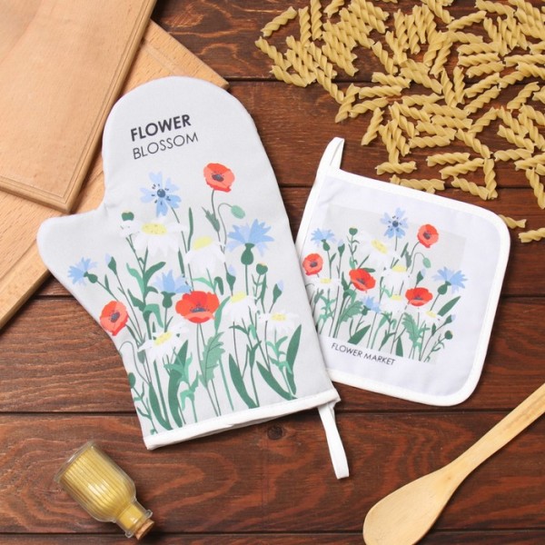 Набор кухонный «Доляна. Полевые цветы»: варежка 20×28 см, прихватка 17×17 см, 35% хлопок, 65% п/э
