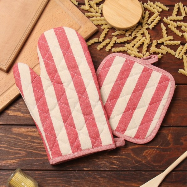 Набор кухонный Доляна Полоса цвет красный, варежка-прих.28х17см, прихватка 17х17 50% п/э 50% хлопок