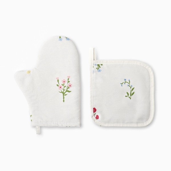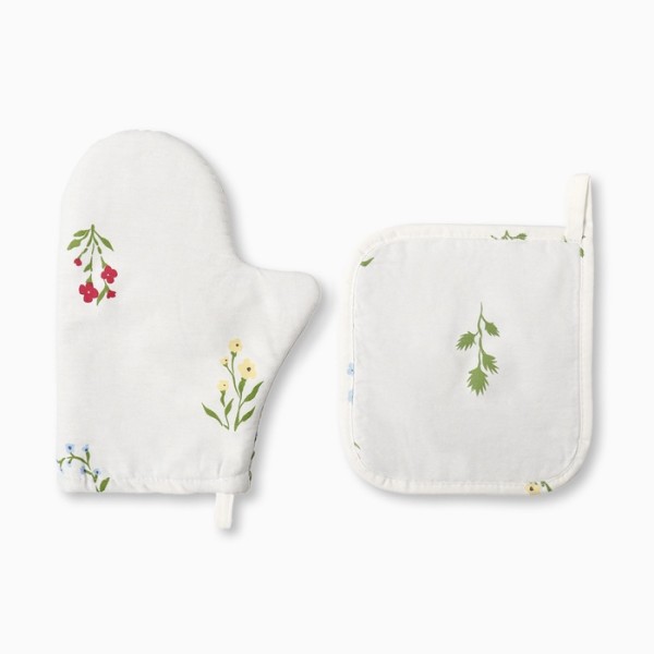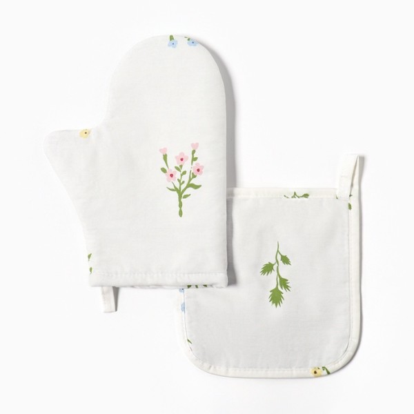Набор кухонный Этель "Цветочек": варежка 20х27 см, прихватка 19х19 см, саржа 190 г/м2, 100% хлопок