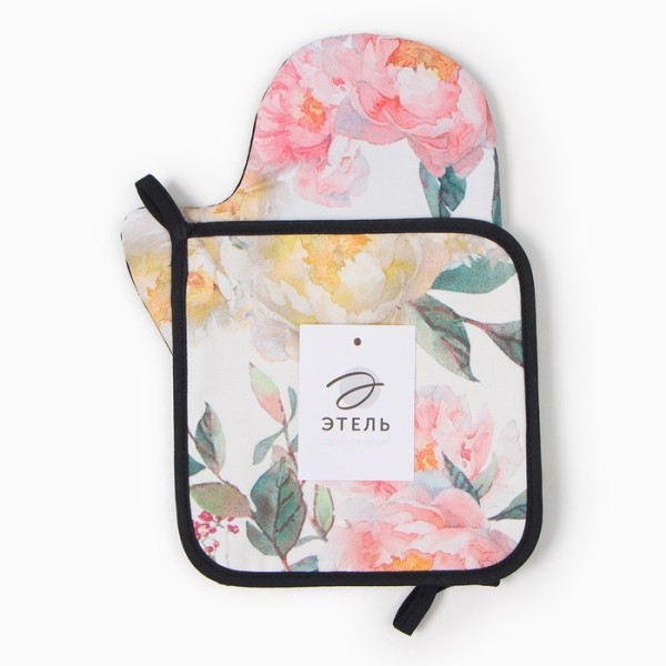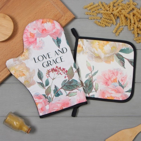 Набор кухонный «Этель» Love and Grace: варежка-прихватка 20×28 см, прихватка 19×19 см,100% хлопок