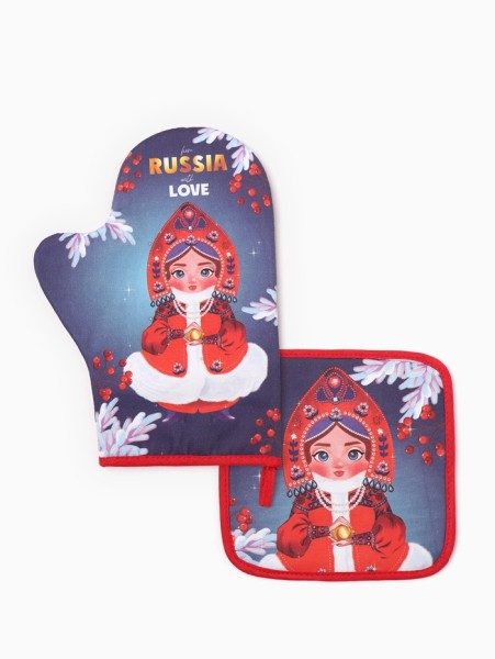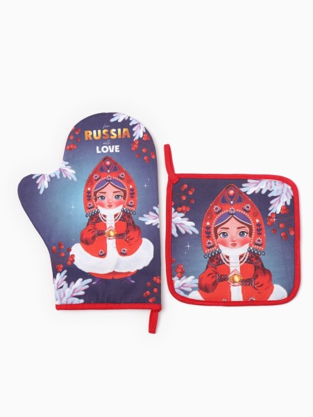 Набор кухонный «Этель. Матрёшка»: прихватка 19×19 см, варежка-прихватка 20×28 см, 100% хлопок