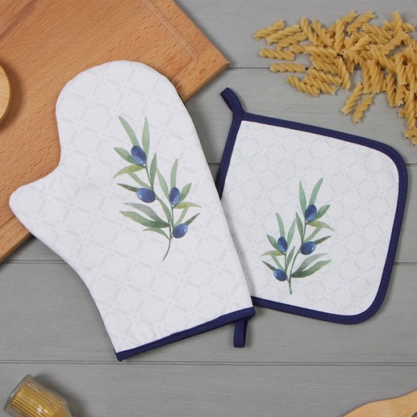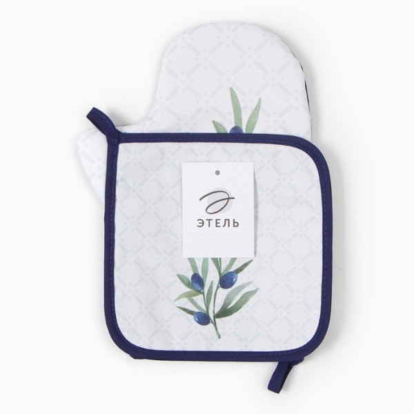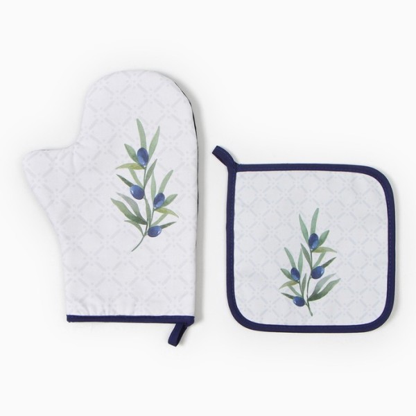Набор кухонный «Этель. Олива»: варежка-прихватка 20×28 см, прихватка 19×19 см,100% хлопок