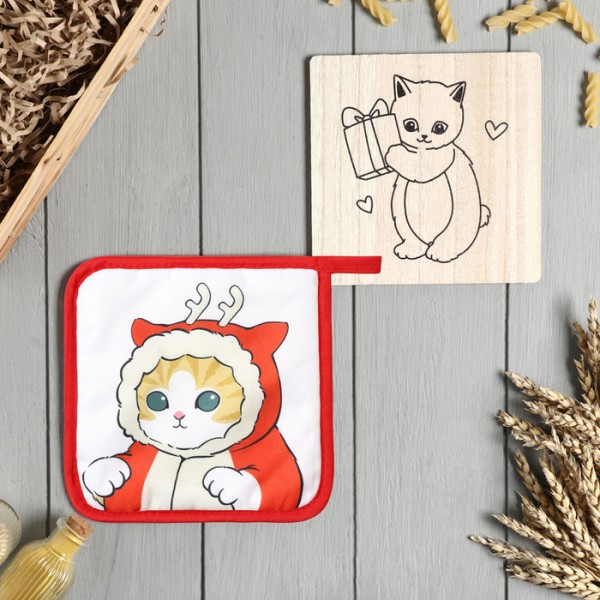 Набор кухонный «Котик»: подставка 15×15 см, прихватка 17×17 см