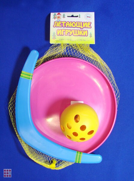 Бумеранг мал. – 30см., летающая тарелка "Фрисби" – 23см., мячик – 7,5см.