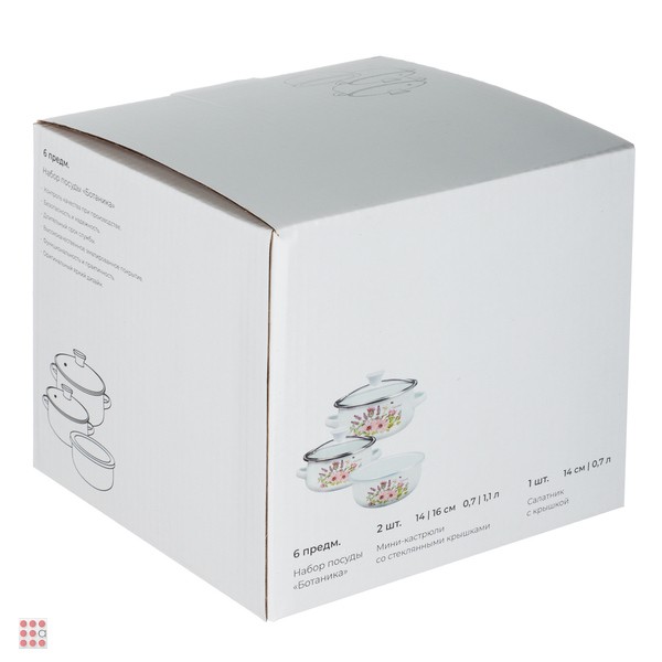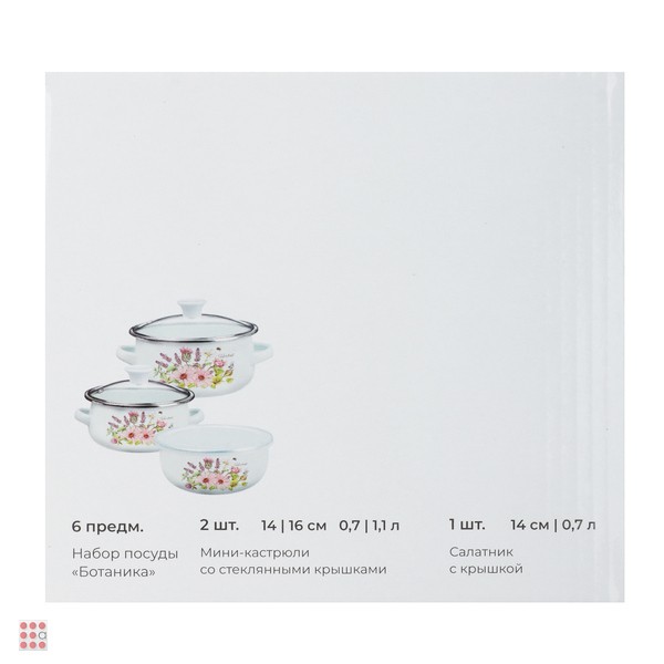 Набор мини-кастрюли 2шт.+салатник 1шт., с крышками, 6 пр. "Ботаника"