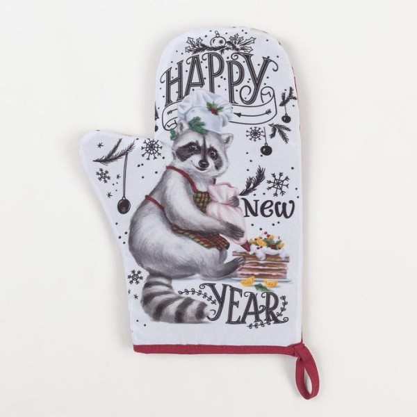 Набор новогодний новогодний кухонный Happy new year: варежка-прихватка 20×28 см, прихватка 17×17 см