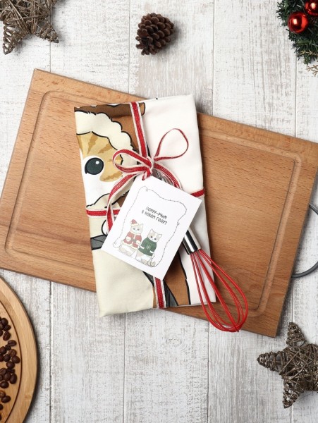 Набор подарочный новогодний «Этель. Помурчим в новом году»: полотенце 40×70 см, венчик кухонный