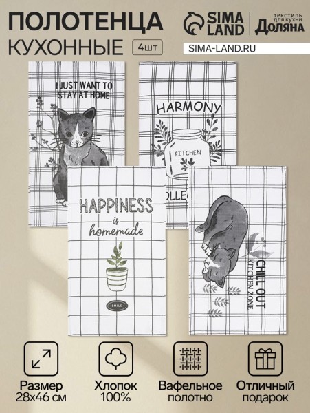 Набор полотенец Доляна «Гармония», 28×46 см - 4 шт., 100% хлопок, вафля 160 г/м²