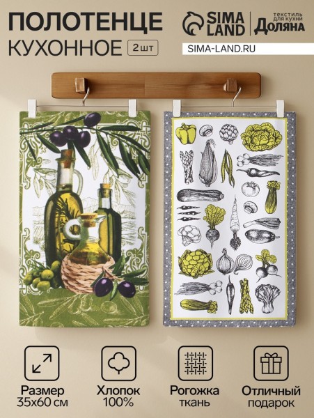 Набор полотенец кухонный Доляна «Овощи» 35×60 см - 2 шт., 100% хлопок