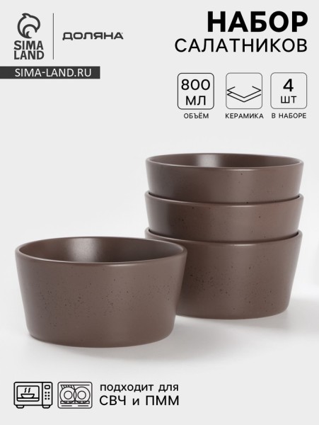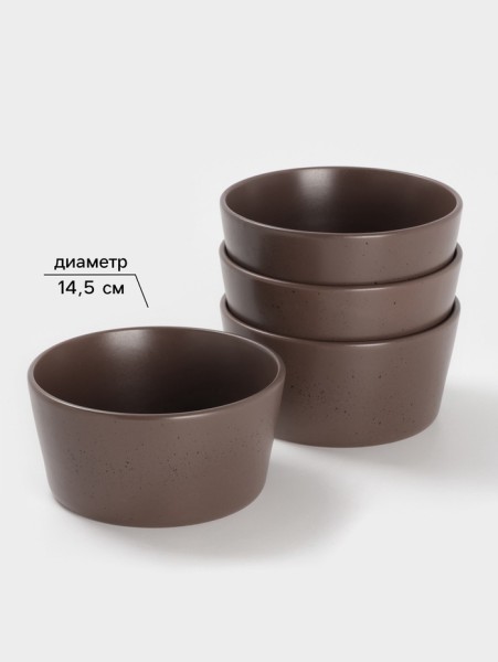 Набор салатников Доляна «Гранит», 4 шт., 800 мл, 14.5×7 см, керамика, коричневый