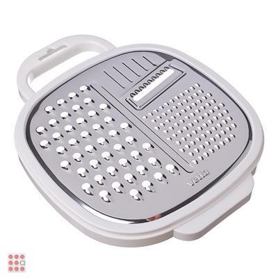 Терка прекрасно дополнит коллекцию ваших кухонных аксессуаров. Изделие сделано из нержавеющей стали и пластика, которые безопасны для здоровья. Оно используется в горизонтальном виде, что позволяет вам меньше уставать от процесса натирания. Пластиковый контейнер экономит место и ваше время. Посуда обладает стойкостью к коррозии, невероятной остротой лезвий и долгим сроком службы. Изделие можно мыть в посудомоечной машине. Безопасная и эргономичная ручка также делает эту модель идеальной для ежедневного использования.Имеет три вида лезвий, для крупного, мелкого натирания, а также для шинковки продуктов.