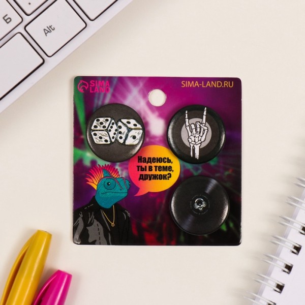 Набор значков на одежду, рюкзак, сумку «Скелет», 3 шт., d=25 мм, закатные, 7×7 см
