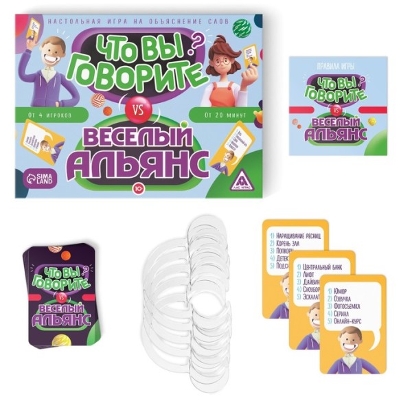 Настольная игра на объяснение слов «Что вы говорите? VS Весёлый альянс», 100 карт, 6 загубников, 10+