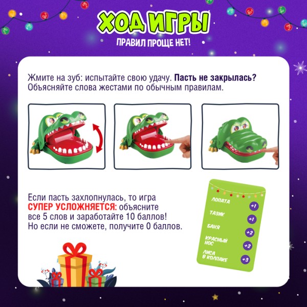 Настольная игра «Новогодний крокодил», от 2 игроков, 5+
