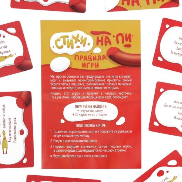 Настольная игра «Стихи на ПИ», с игрушкой-пищалкой, 30 карт, 18+
