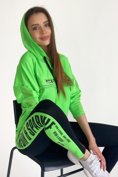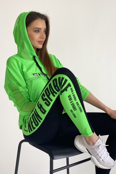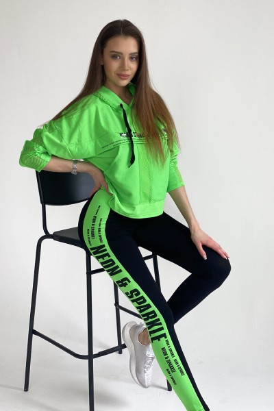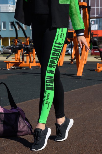 Лосины облегающие, длинные, сверху на резинке. Вдоль боковых швов расположен лампас из отделочного полотна.