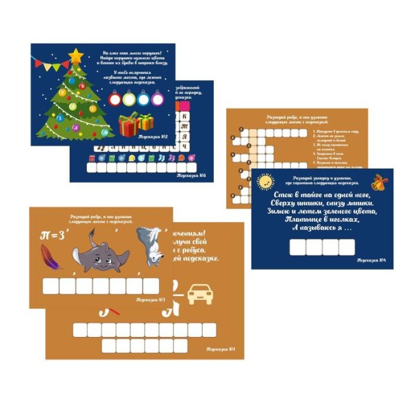 * 7 листочков-подсказок с загадками, ребусами и шифрами.