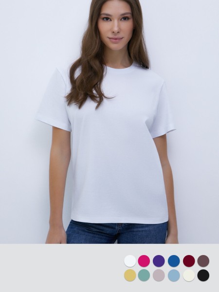 Женская футболка с коротким рукавом. В составе – высококачественный хлопок, который обладает отличной воздухопроницаемостью, хорошо впитывает влагу и подходит даже для чувствительной кожи, и эластан, который позволяет создать полуприлегающий силуэт и способствует длительному сохранению формы и цвета.