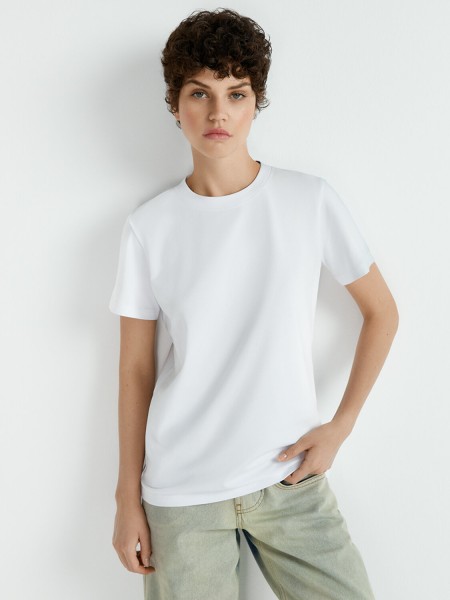 Omsa Футболка OmT_D1203 Футболка женская прямого кроя, CO+EL Bianco (Белый)