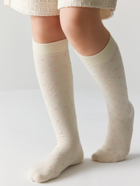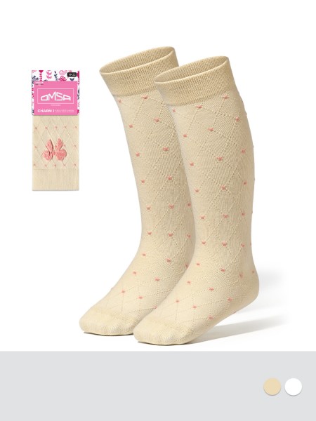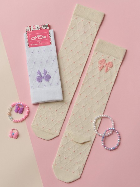 Omsa Гольфы OMSA kids Gambaletto 32P32 ажурные с имитацией рисунка ромб и бантика сзади Avorio (Молочный)