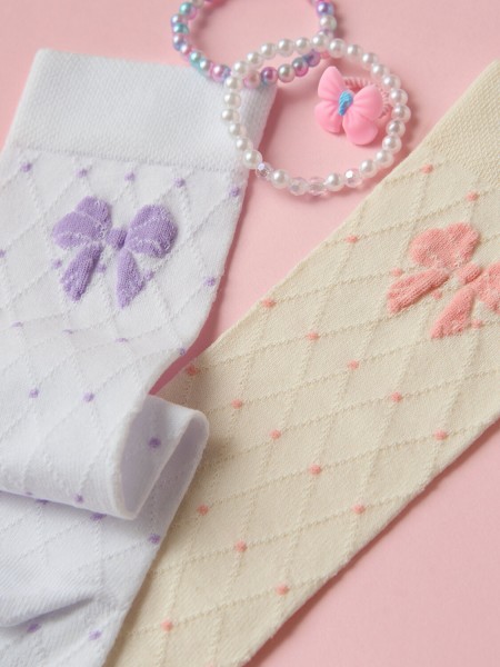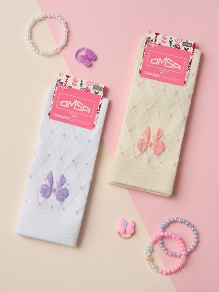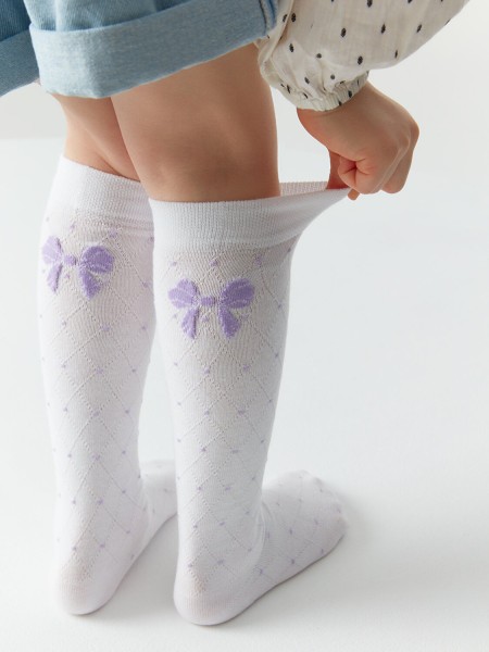 Omsa Гольфы OMSA kids Gambaletto 32P32 ажурные с имитацией рисунка ромб и бантика сзади Bianco (Белый)
