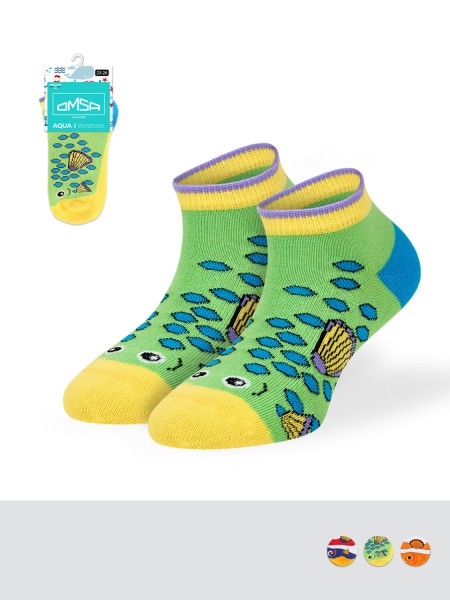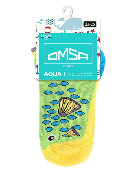 Носки детские CALZINO 21P62 тм OMSA KIDS укороченные с рисунком «Рыбки». В составе органический хлопок - экологичный, дышащий материал высокого качества, который отлично пропускает воздух, интенсивно поглощает влагу и подходит даже самой чувствительной кожи.