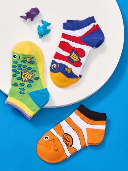 Носки детские CALZINO 21P62 тм OMSA KIDS укороченные с рисунком «Рыбки». В составе органический хлопок - экологичный, дышащий материал высокого качества, который отлично пропускает воздух, интенсивно поглощает влагу и подходит даже самой чувствительной кожи.