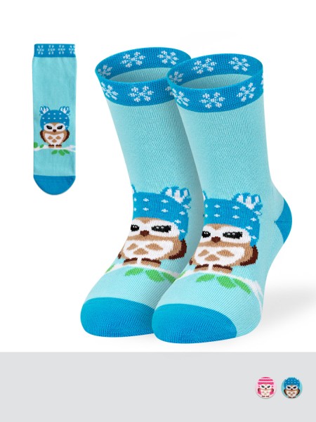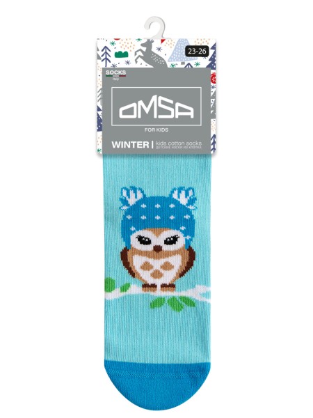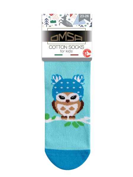 Omsa Носки OMSA kids Calzino 21P64 плюш по стопе (совы) Blu Сhiaro (Голубой)