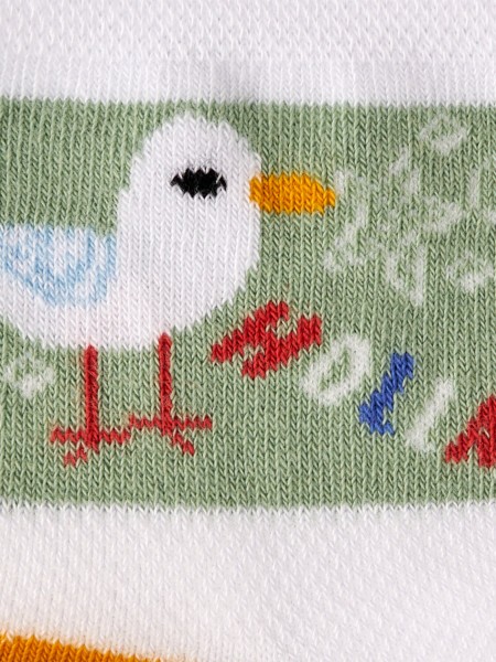 Детские летние носки Calzino 21P72 с забавными рисунками «чайка, крабик и кит». Модель вывязана по специальной технике, которая обеспечивает повышенную воздухопроницаемость. Высококачественный хлопок в составе хорошо впитывает влагу и подходит для чувствительной детской кожи. Добавление волокон эластана и полиамида способствует увеличению прочности. Благодаря сочетанию материалов, носки отлично сохраняют форму и цвет после стирки. Соответствуют гигиеническим требованиям для детской продукции.