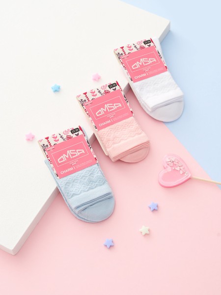 Носки детские для девочек CALZINO 22A01 тм OMSA KIDS с рисунком «Ажур». Выполнены из высококачественного, дышащего хлопка, который отлично впитывает влагу и оптимально подходит для нежной детской кожи.