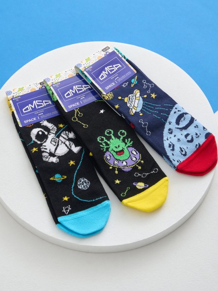 Красочные и яркие носки, которые наверняка понравятся юным исследователям космоса. Целая серия рисунков с космонавтами, инопланетянами, космическими кораблями и планетами точно не оставит ребенка равнодушным – носки станут прекрасным подарком на любой праздник. Продукция Omsa Kids создана с заботой и любовью к детям.