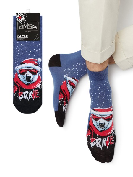 Мужские носки с праздничным новогодним рисунком. Изготовлены из мягкого хлопка, который обладает высокой воздухопроницаемостью, приятно ощущается на теле и подходит для чувствительной кожи. Удобная резинка и кеттельный (плоский) шов на мыске обеспечивают максимальный комфорт.