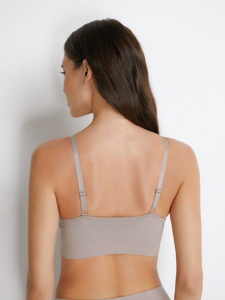 Бесшовный топ - бюстгальтер из меланжа, на эластичных регулируемых бретелях. Выполнен из мягкой микрофибры, которая приятно ощущается на теле, отлично пропускает воздух, впитывает влагу, хорошо сохраняет форму и цвет.