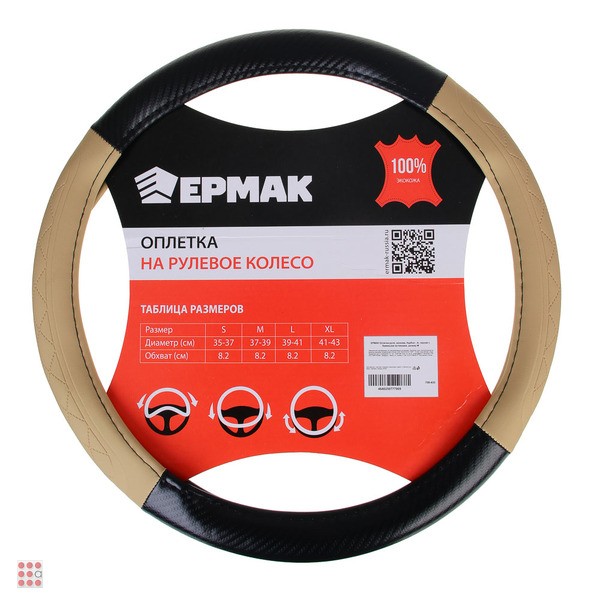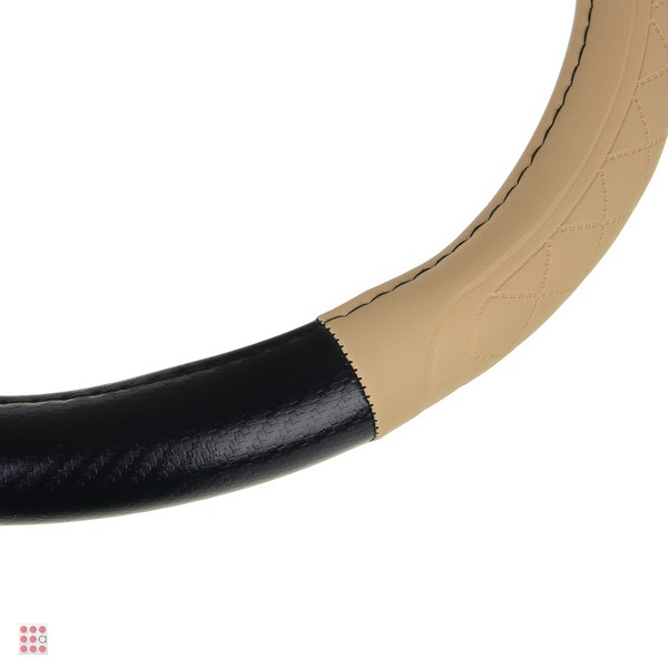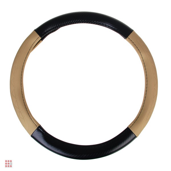 Оплетка руля, экокожа, Карбон - А, черная с бежевыми вставками, размер М