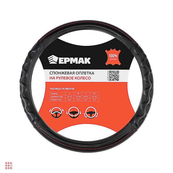 Оплетка руля, экокожа, со вставками "карбон", с эргоном. захватом, черный, разм. (М)