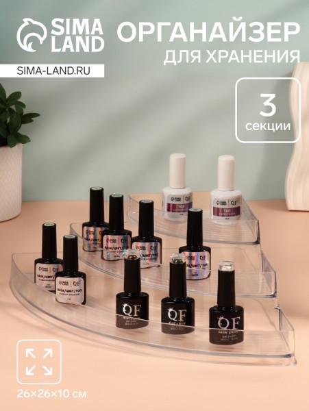 Органайзер для хранения, 3 секции, 26×26×10 см, прозрачный