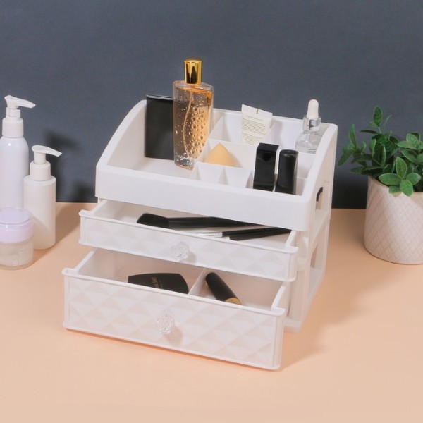 Органайзер соберёт все ваши косметические принадлежности в одном месте и поможет навести порядок. В основном отсеке расположите баночки, тюбики, спонжи и другие средства или предметы. Выдвижные ящики позволяют хранить различный декор, косметику, небольшие аксессуары, ватные палочки и всё, что вам необходимо для ухода за собой. Органайзер станет гармоничным дополнением любого интерьера.