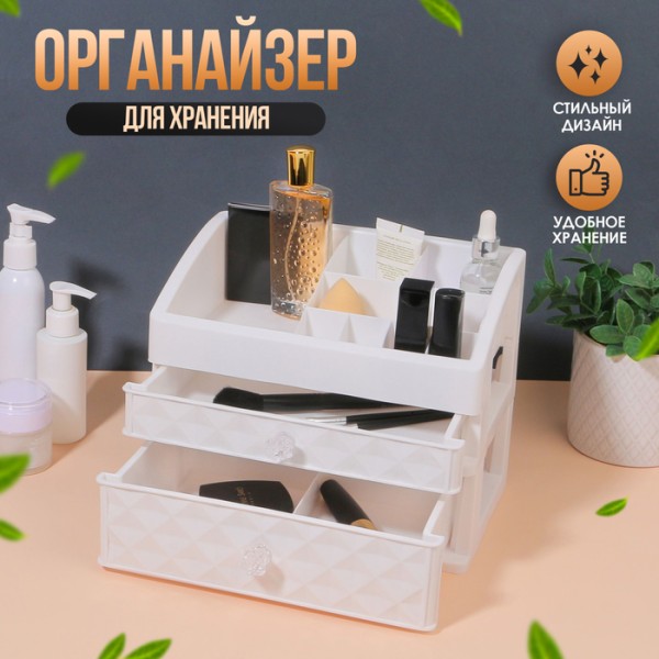 Органайзер для хранения, 8 секций, 2 ящика, 25×16.5×20 см, белый