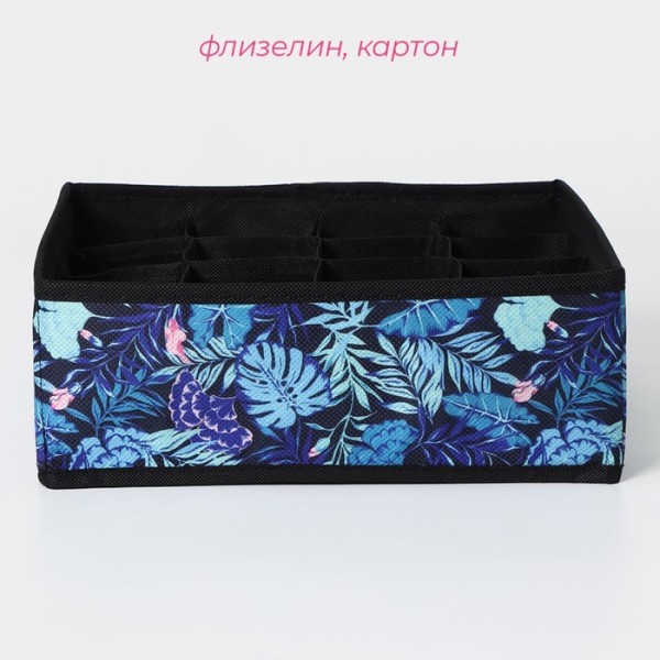Органайзер для хранения белья Доляна «Тропики», 16 ячеек, 27×25×10 см, синий