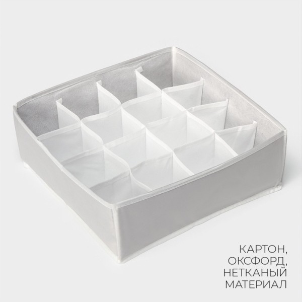 Органайзер для хранения белья LaDо́m, 16 ячеек, 32×32×12 см, серый