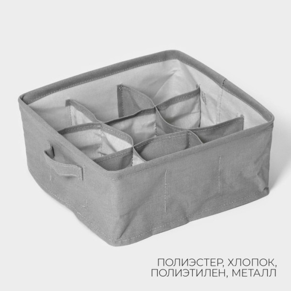 Органайзер для хранения белья LaDо́m, 9 ячеек, 28×28×11 см, серый