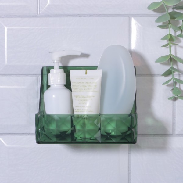 Органайзер легко крепится к любой поверхности с помощью клеевой основы, что обеспечивает удобное использование в ванной, на кухне или в спальне. Полупрозрачный зелёный цвет добавляет свежести интерьеру, а минималистичный дизайн делает его идеальным для любого стиля.