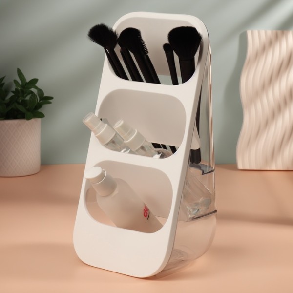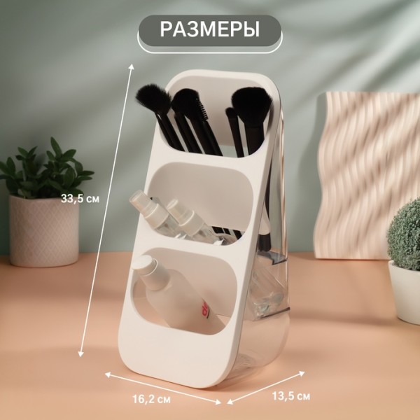 Органайзер для хранения косметики, 3 секции, 16.2×13.5×33.5 см, белый, прозрачный