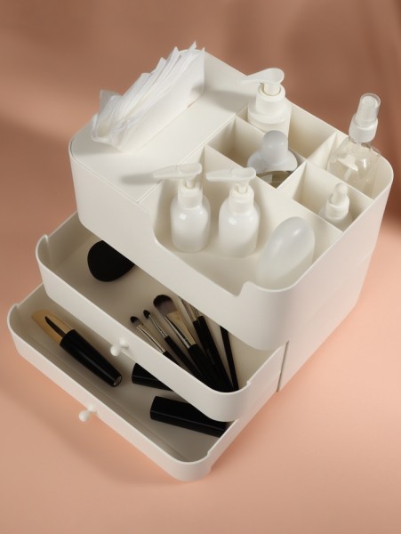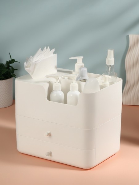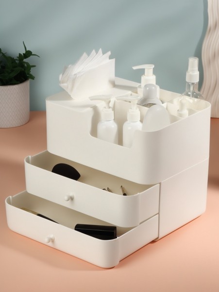 Органайзер для хранения косметики, многоуровневый, 2 ящика, 26×20.7×21.8 см, белый