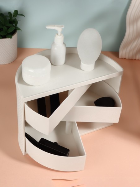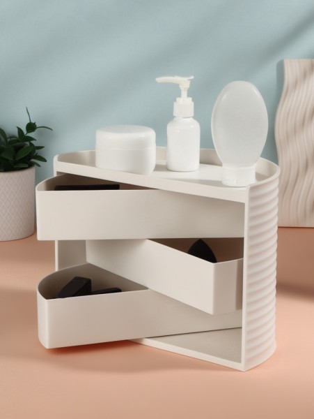 Органайзер для хранения косметики, вращающийся, 3 секции, 27×15 см, белый