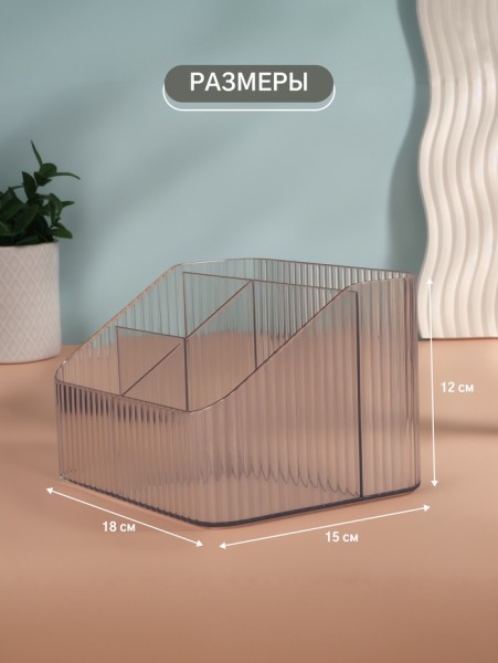 Органайзер выполнен из прочного пластика и имеет размеры 18 x 15 x 12 см, что делает его идеальным для размещения на столе, полке или в ванной комнате. Благодаря своему лаконичному дизайну и многообразию цветовых решений (цвет МИКС), он легко впишется в любой интерьер, будь то дом или рабочее место.