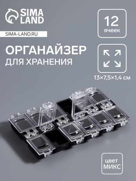 Органайзер для хранения мелочей, 12 ячеек, 13×7.5×1.4 см, МИКС