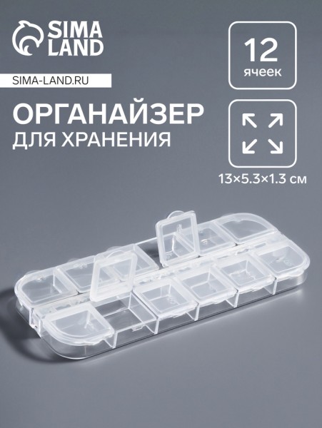 Органайзер для хранения мелочей, 12 ячеек с номерами, 13×5.3×1.3 см, прозрачный