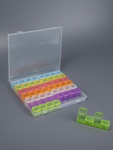 Рукодельницы оценят удобство хранения пайеток, бусин, ракушек и других миниатюрных элементов. А в домашнем офисе такие контейнеры помогут держать в порядке скрепки, кнопки, батарейки и прочие мелочи.